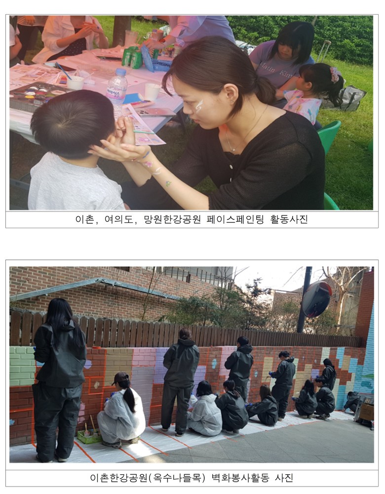 - 벽화로 새 단장, 뜨개예술품(얀바밍) 설치 및 페이스페인팅 봉사활동도