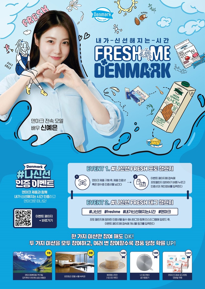 ‘#나신선 인증’ 이벤트는 덴마크 유제품 구매 후 제품이나 영수증을 촬영한 후 인증 사진을 이벤트 홈페이지에 게시하면 △북유럽 7박 9일 여행권 △반얀트리 호텔 서울 숙박권 △에르메스 찻잔 △LG 퓨리케어 공기청정기 △덴마크 드링킹 요구르트 등의 경품을 제공하는 행사다.