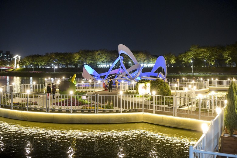또 행사를 지켜본 시민들은 야간 조명 점등과 테이프 컷팅을 통해 물 위 정원이 모습을 드러내자 환호했다.