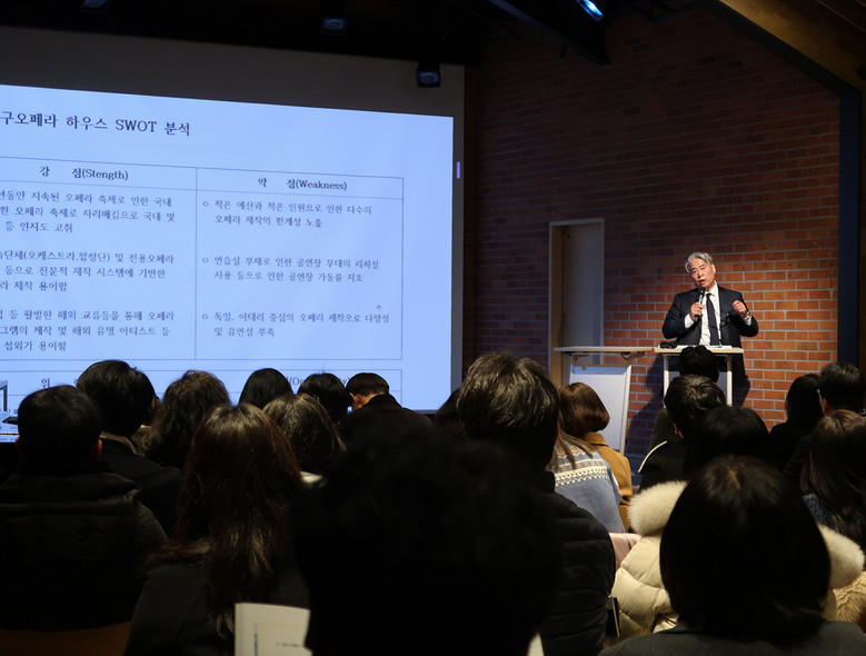 또한 일반인의 문화 예술 향유와 더불어 세계적으로 위상이 높은 한국 오페라의 발전을 위해서 오페라 전용 극장이나 전문가 육성에 대한 적극적인 정책과 지원이 있어야 한다며 발제를 마쳤다.