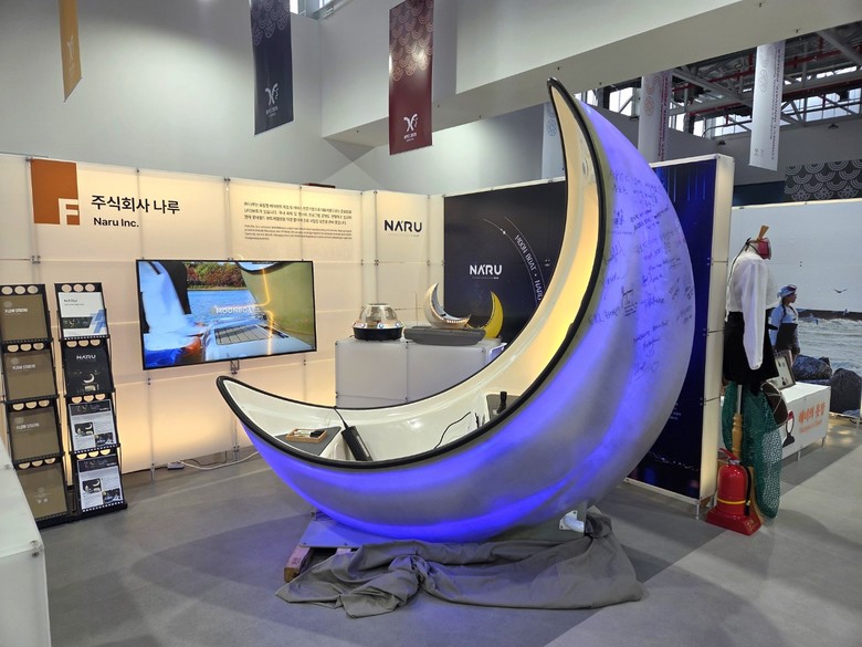 나루(NARU)는 달 모양의 조형물을 활용한 수상 보트인 ‘문보트(Moon Boat)’를 출품한다. LED 조명과 전기 모터를 탑재한 이 제품은 야간 수상체험용으로 개발되었으며, 현재 서울 잠실 석촌호수에서 운영 중으로 야간 관광 콘텐츠로 주목받고 있다. 전시장에는 보트면에 방문자 사인 이벤트를 열고, 향후 APEC 시그니처 모델로 상품화할 계획이다.