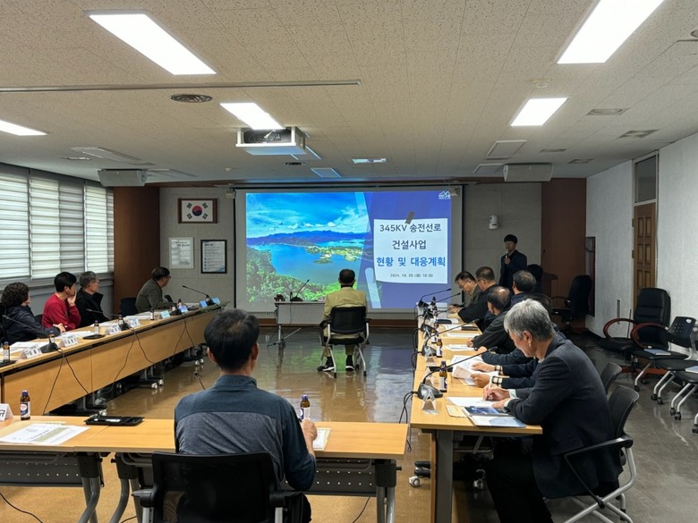 [진안 = 세계타임즈 김서주 기자] 진안군은 29일 이장단연합회 20여명을 대상으로 군청 상황실에서 최근 군민들 사이에서 우려의 목소리가 높아지고 있는 진안군 경과 송전선로 사업 관련 설명회를 개최했다.