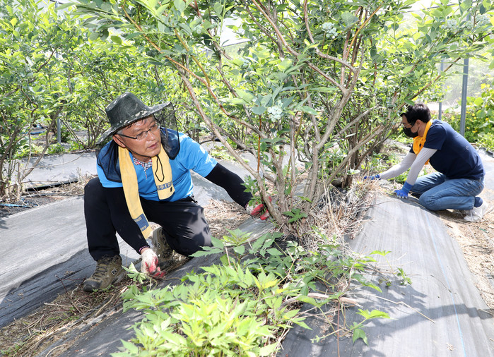 장선배 의장과 임영은 도의원 및 의회사무처 직원 60여명은 진천군 백곡면 사송리 김성중 농가 등 3개 농가를 방문해 블루베리·아로니아 밭 잡초제거와 고추 순 따기 등의 작업을 실시하며 구슬땀을 흘렸다.