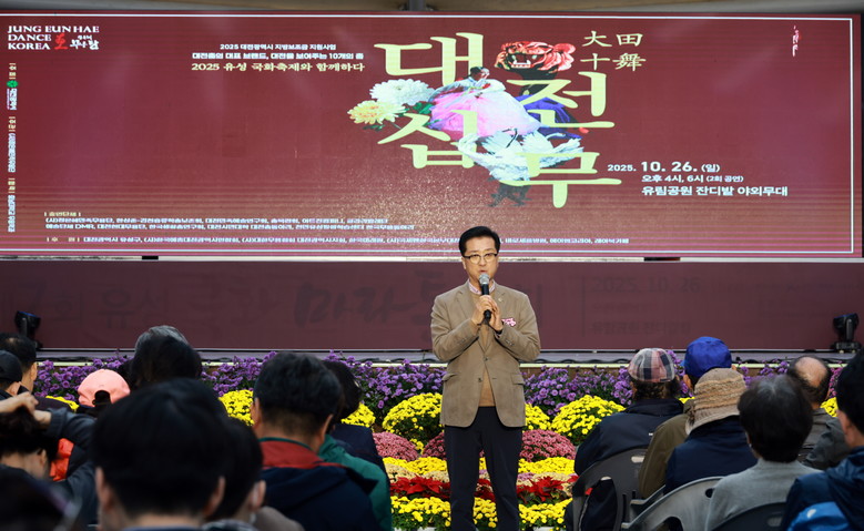 [대전 세계타임즈=이채봉 기자] 대전시의회 조원휘 의장은 26일 유림공원(유성구 봉명동)에서 열린 2025 대전십무 공연에 참석해 지역 문화예술 발전을 위한 정책적 관심과 지원 의지를 밝혔다.