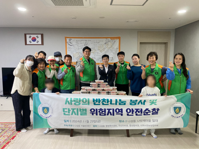 한편 나성동 지역자율방재단은 취약계층을 위해 관내 경로당 점검과 무료 반찬 나눔 등 지역사회 안전 확보 및 발전에 기여하고 있다.