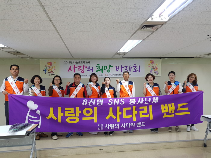 현재 8천명의 회원이 활동하고 있는 사랑의 사다리 밴드는 회원들의 자발적인 후원금으로 사무실을 운영하면서 한 달에 20회~25회 다양한 봉사를 통해서 우리 사회의 따뜻한 사랑과 나눔을 실천하고 있다.