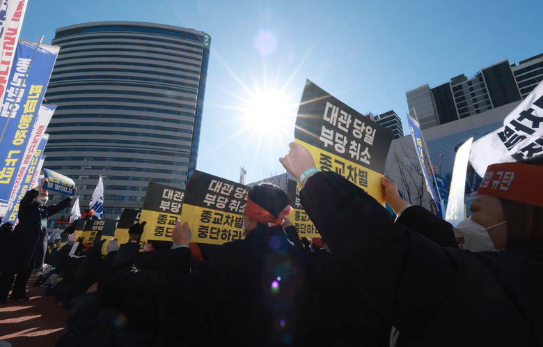 참석자들은 결의문 낭독 후 “정치와 종교를 분리하라”, “편파적 행정을 중단하라”는 구호를 외치며 항의했다.