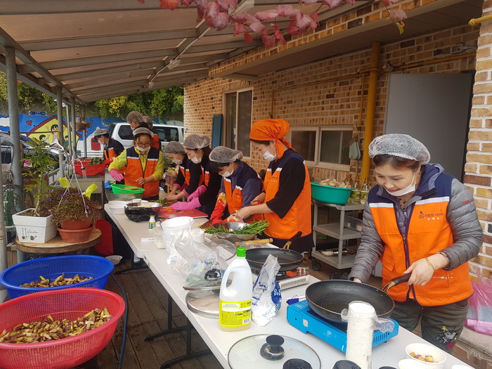 이날 삼계탕 봉사에는 유희자 단장을 비롯한 회원15명이 삼계탕, 닭죽, 묵무침, 부침개를 준비하여 30명의 장애인들에게 점심식사를 대접하였다.