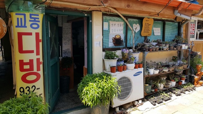 이곳은 완전히 허물어 버리고 새 건물을 지은 게 아니라 옛 건물을 고스란히 품고 국내 최초 방직회사라는 스토리를 살렸다. 오래된 창고의 벽 모습을 그대로 두고, 대형 영사기로 벽에 흑백영화를 상영해 벽 자체가 미술품이다. 카페 안쪽에는 빈티지한 소품, 가구들이 놓인 상신상회 코너도 꾸며져 있다. (문의: 조양방직 032-933-2192 주소: 강화읍 향나무길5번길 12)