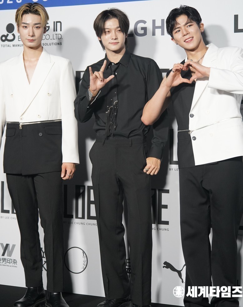 아이돌그룹 '빅오션'이 4일 서울 중구 동대문디자인플라자(DDP)에서 열린 2026 S/S서울패션위크 라이(LIE) 패션쇼에 참석해 포즈를 취하고 있다.