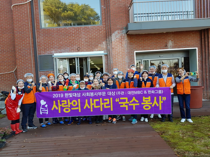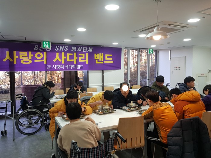 [대전=세계타임즈 이장성 기자] 대전시 SNS 봉사단체 사랑의 사다리 밴드(리더 이정제)는 24일 오전10시, 유성구 용계동에 위치한 중증장애인거주시설 성세재활원(원장 김원식)에서 국수봉사로 우리 사회의 따뜻한 사랑을 전달하였다.