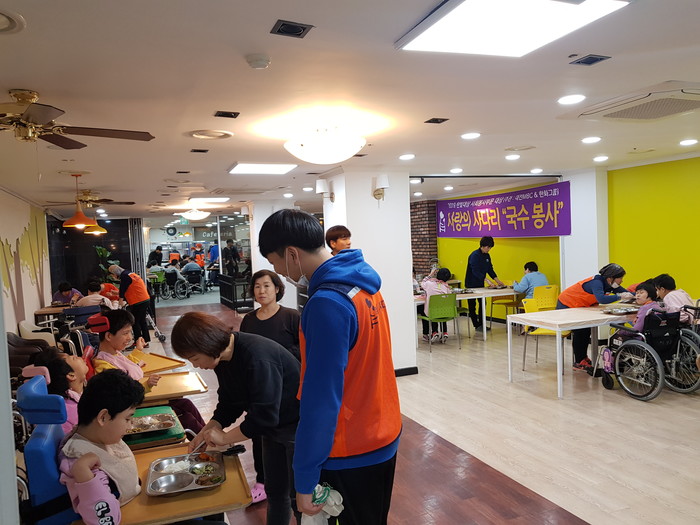 한철웅 국수봉사 단장은 “오늘 국수를 맛있게 드시는 장애인분들의 모습에서 봉사자로서 행복과 보람을 느낀다.”고 말했다.