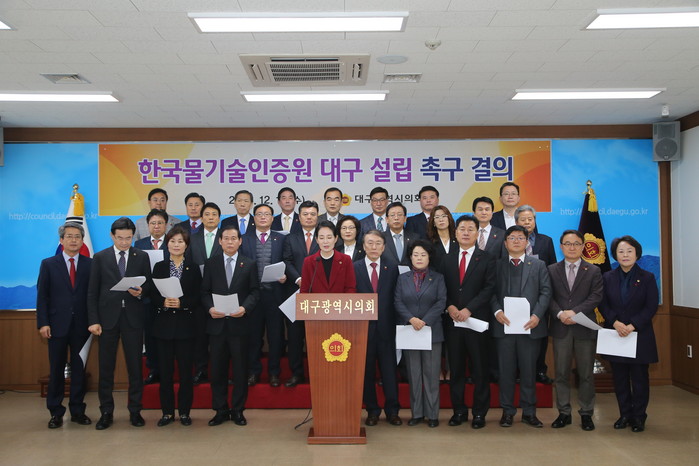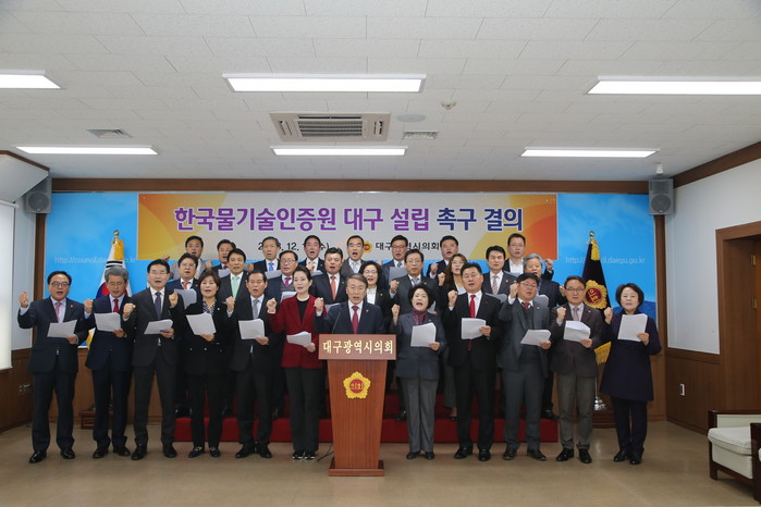 [대구=세계타임즈 한성국 기자] 대구광역시의회 하병문 의원(경제환경위원회 위원장)이 대표발의 한「한국물기술인증원 대구 설립촉구 결의안」이 12월 19일(수) 제4차 본 회의에서 채택되고 한국물기술인증원을 물산업클러스터내에 조속히 설립할 것을 촉구하는 결의대회를 가졌다.