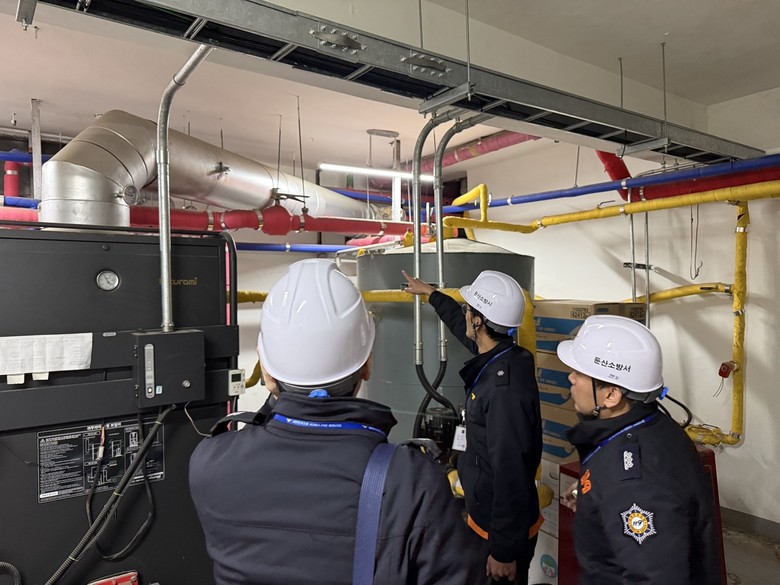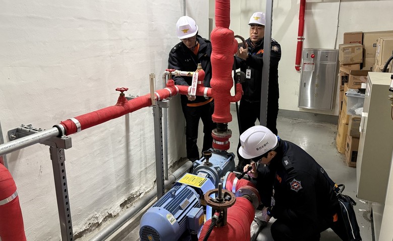 | ▲ 소화배관 확인하는 소방공무원(본 사진은 참고사진으로 이번 긴급 화재안전조사와는 관련 없슴.) |