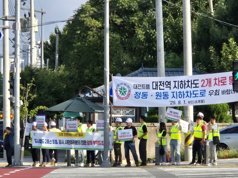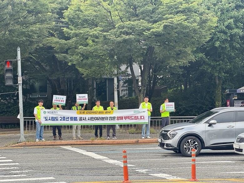 이번 캠페인은 27일 오전 8시 대전역 지하차도와 서구 서부소방서 삼거리에서 동시에 진행됐다. 대전시 도시철도건설국 전 직원을 비롯해 시공사·감리단 등 공사 관계자가 참여해 출근길 시민들에게 교통 통제 계획을 알리고 협조를 당부했다.