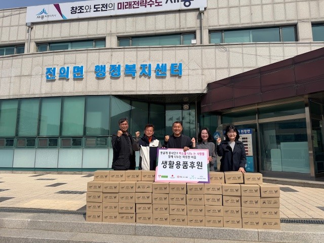 [세종 세계타임즈=이채봉 기자] 봉사단체 ‘둥글개 봉사단’과 ‘미소를 나누는 사람들’이 24일 전의면 행정복지센터를 방문해 생활용품 꾸러미 상자 95개를 기탁했다.
