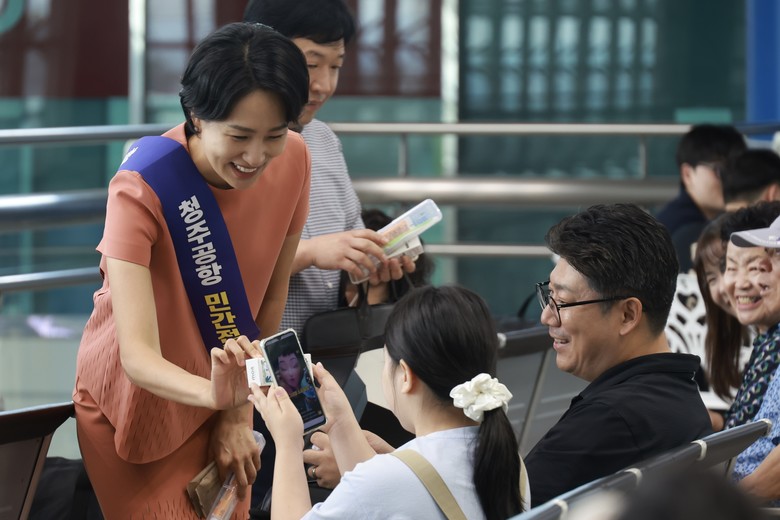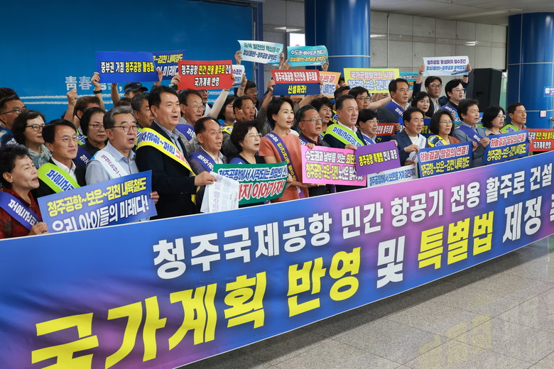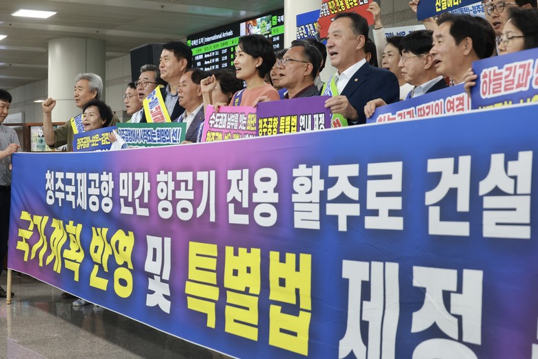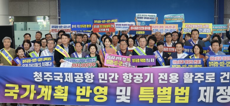 행사에 참여한 김수민 충북도 정무부지사가 “국가균형발전의 새로운 성장축인 청주국제공항 민간전용 활주로 건설과 ‘동탄~청주공항~김천 철도 건설 사업’을 조속히 추진할 것”을 촉구하고 있다.