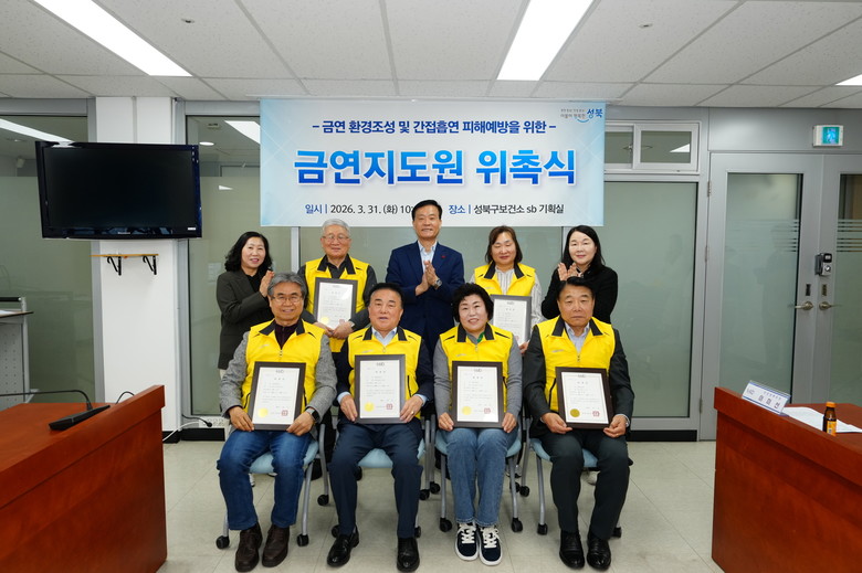 성북구 관계자는 “이번에 위촉된 금연지도원들은 법령에 따른 지도·점검뿐 아니라 흡연의 폐해를 알리는 금연 홍보대사 역할도 수행하게 된다”며 “구민 건강 보호와 금연문화 정착을 위해 적극적인 활동을 당부한다”고 말했다.