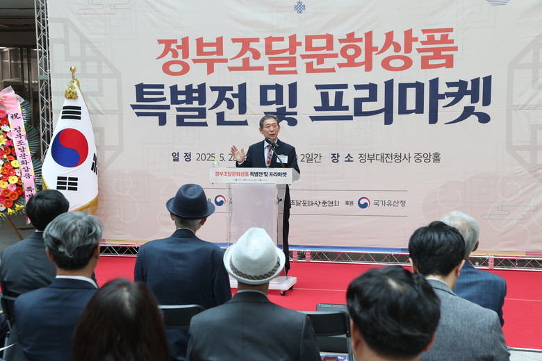 장종태 국회의원 축사.....장종태 국회의원은 축사에서 "전통문화 상품에 대한 관심 제고 및 판로 확대를 위해서 정부 조달문화상품 특별점 및 프리마켓 개최를 진심으로 축하한다"며 "오늘 행사를 처음 열어주신 임기근 조달청장님이 대단한 결심을 하셨다"고 말했다.