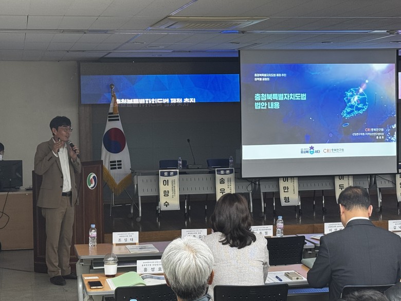 이날 발표에 나선 오유길 충북도 정책기획관은 전국적인 지자체 통합 및 개편 논의가 활발한 가운데, 충북만의 독보적인 정체성을 확립하고 지역 발전을 위한 실질적 토대를 마련하기 위해 특별자치도 추진이 불가피한 선택임을 역설했으며, 홍성호 충북연구원 선임연구위원이 법안의 핵심 내용을 상세히 발표했다.
