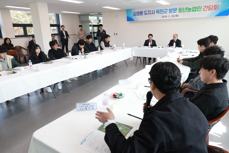 먼저 김영환 지사는 예비 귀농·귀촌인의 초기 정착 부담을 덜고 안정적인 기반 마련을 위해 조성된 창업농사관학교를 방문했다. 이곳의 창업농 거주용 단독주택과 교육실, 실내체육실 등 주요 시설을 살펴본 뒤, 청년 농업인 10여 명과 함께 농촌 정착 과정에서 겪는 현실적인 고민과 개선 과제에 대해 의견을 나눴다.