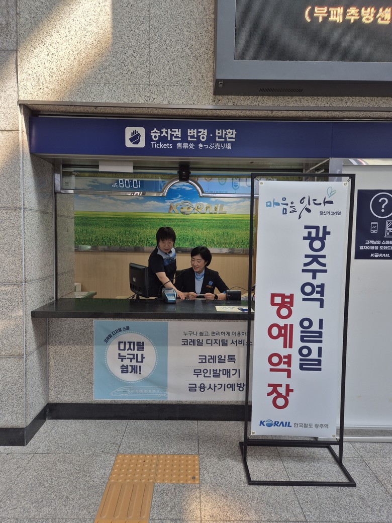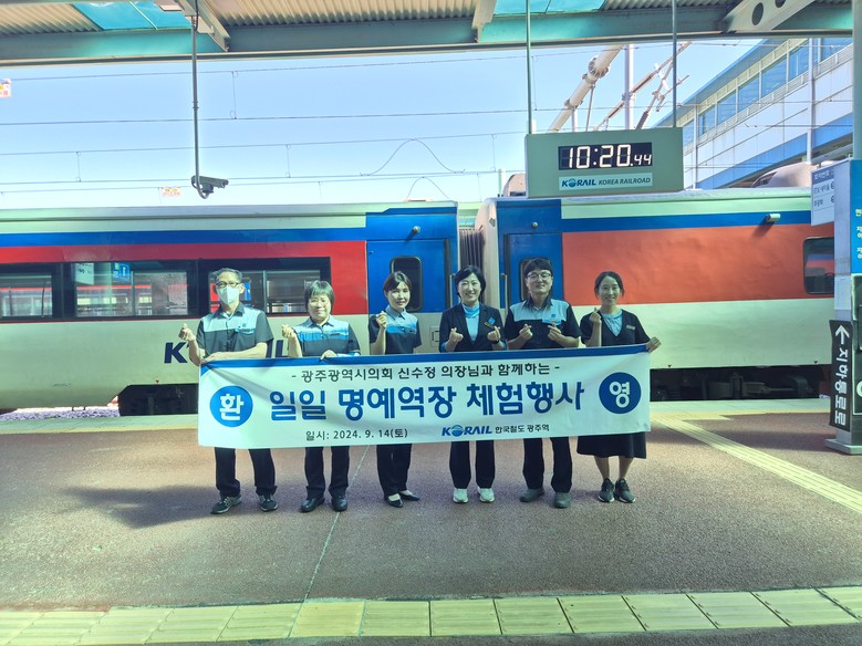 이정호 광주관리역장은 “바쁘신 와중에도 일일 명예 역장 체험 행사에 함께 해주신 신수정 의장님께 감사드린다”며 “지역과 활발히 소통하여 함께 성장하는 코레일 광주역이 되도록 노력하겠다”고 밝혔다.
