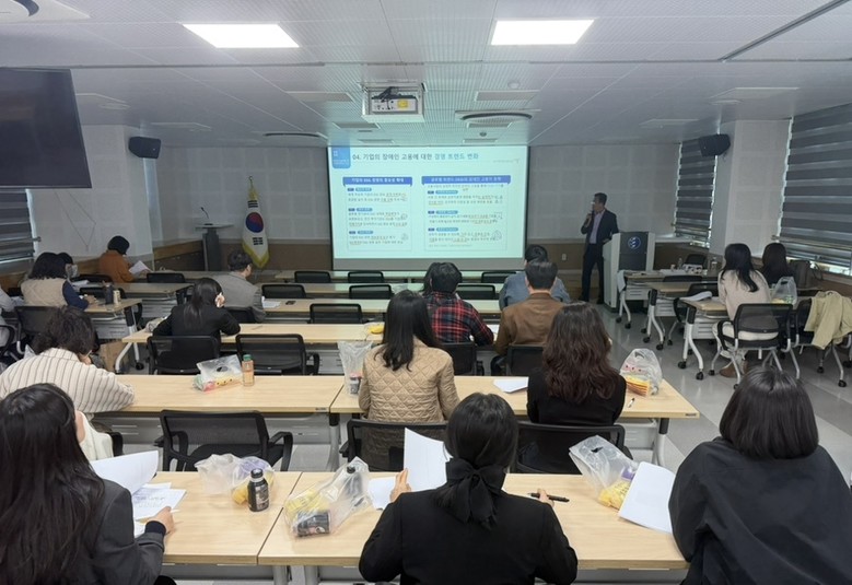 이어 강사로 나선 한국장애인고용공단 이승직 차장은 장애인고용공단과 산하 기관의 사업에 대해 안내하여 진로·직업 담당 교사들에게 직업 전환 프로그램 연계 방안에 대한 이해를 도왔다. 다음으로 대덕구장애인종합복지관 명지혜 팀장은 장애인 일자리 취업에 대한 강의를 통해 중증 장애 학생들이 취업할 수 있는 분야를 함께 모색하는 시간을 가졌다.