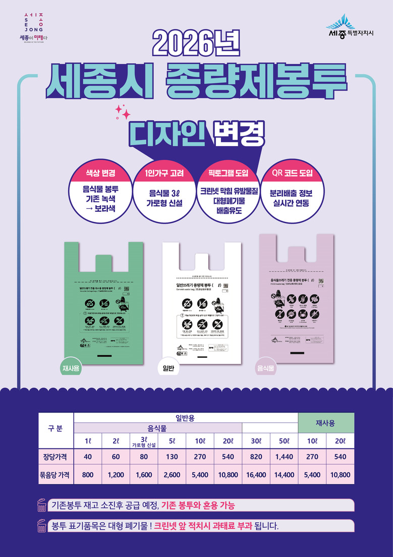 또 1인 가구를 증가 등을 고려해 3ℓ 가로형 음식물 쓰레기 봉투를 새롭게 도입했다.