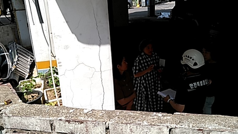 | ▲ 건물 기둥 균열 점검 |