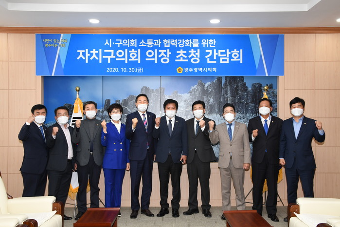 김용집 의장은 “150만 광주시민의 대의기관인 광주시의회와 5개 자치구의회가 지역현안에 대한 협력방안 모색과 의원들의 의정활동 발전을 위해 소통하는 자리가 마련되어 매우 뜻깊게 생각한다”며, “5개 자치구의 공동발전과 150만 시민의 행복을 높이기 위해 앞으로도 자주 만나 지혜를 나누면서 긴밀하게 협력해나가자”고 말했다.