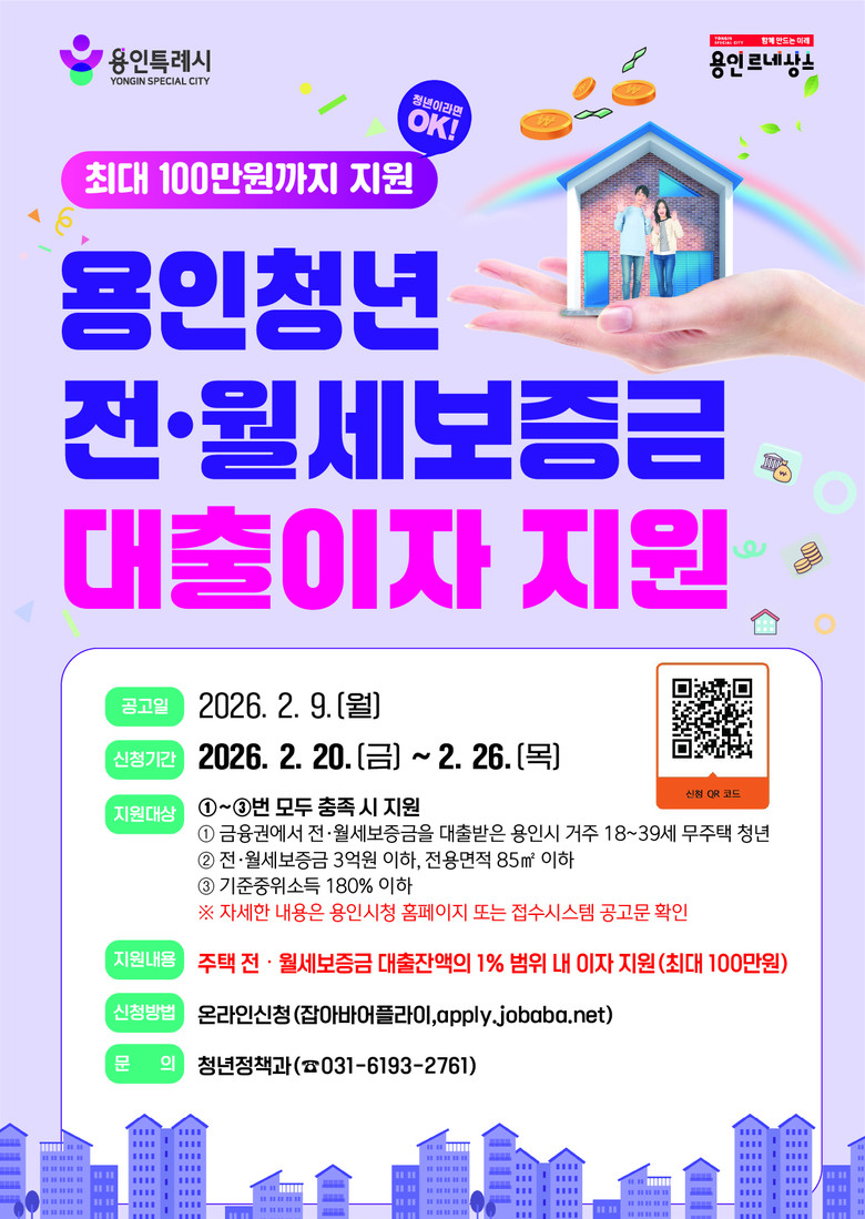 이상일 시장은 “주거비 부담은 많은 청년들이 겪는 현실적인 어려움”이라며 “앞으로도 청년들이 용인에 안정적으로 정착할 수 있도록 실질적인 주거지원 정책을 지속적으로 추진하겠다”라고 말했다.