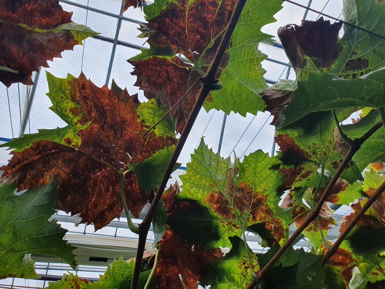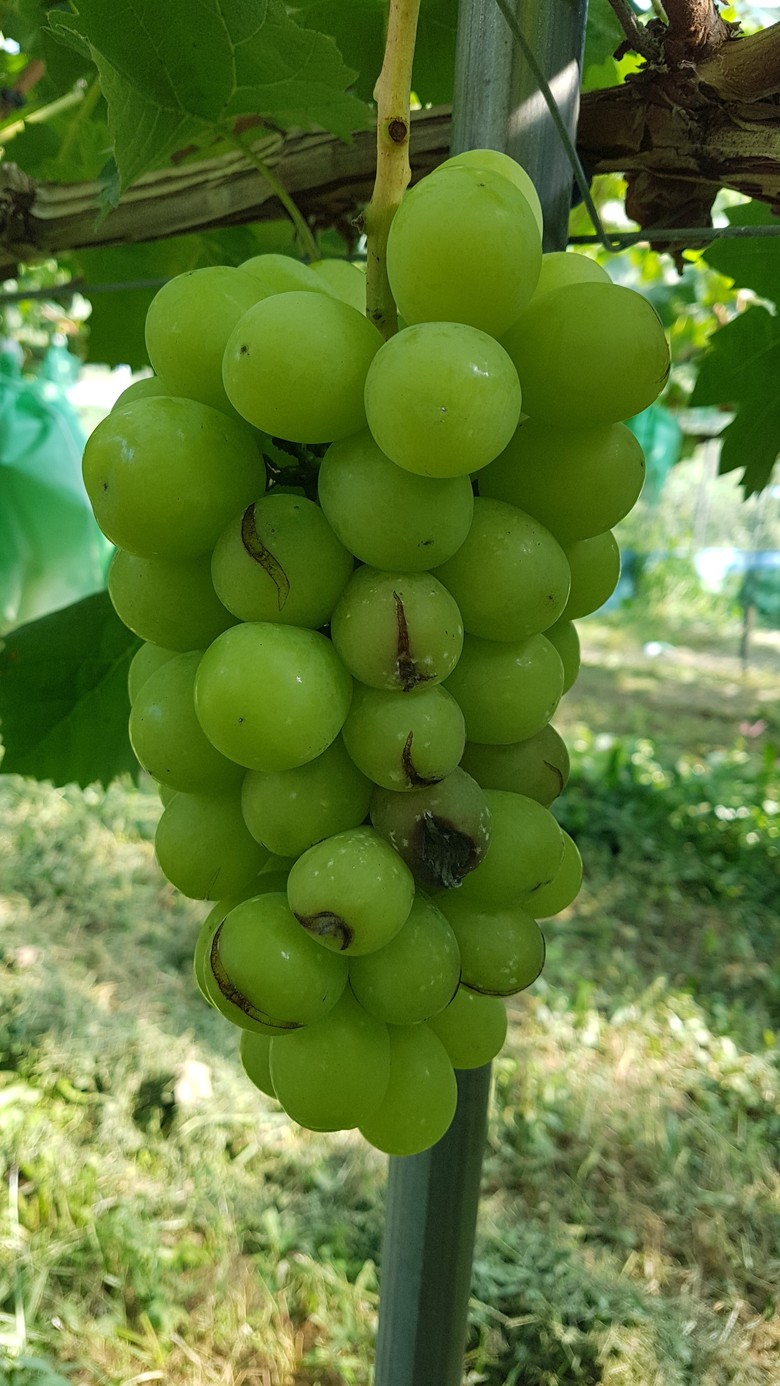 강한 햇볕에 의해 포도알 표면 온도가 40℃ 이상으로 올라가면 일소와 엽소(잎 타는 증상)가 발생하기 쉽고, 광합성 효율 저하와 과다한 호흡으로 인해 당도와 착색에도 부정적 영향을 미친다.