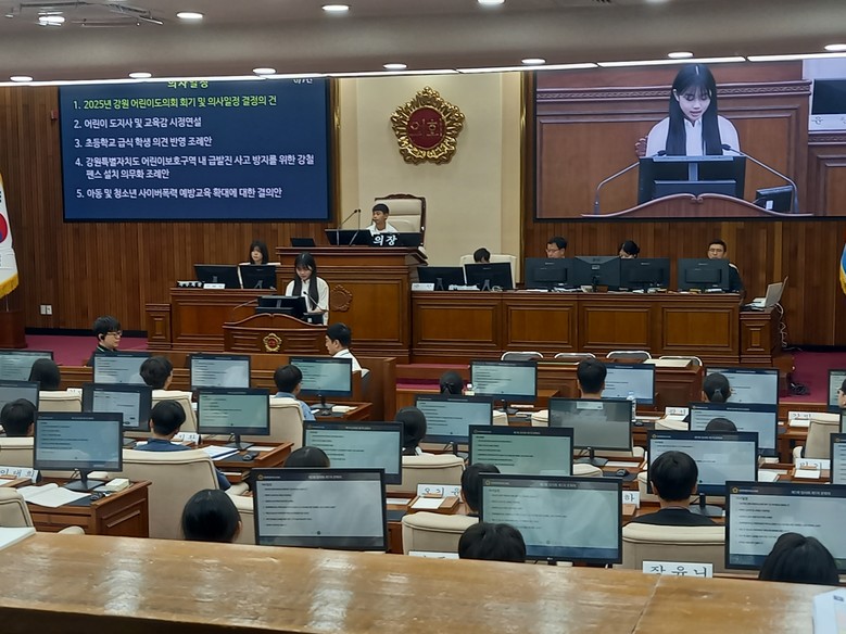 송수경 인성생활교육과장은 “강원 어린이도의회 활동은 학생들이 민주주의의 절차와 토론 문화를 직접 경험하며 미래 시민으로서 갖추어야 할 역량을 키우는 소중한 기회”라며, “앞으로도 도교육청은 미래 세대가 주체적으로 성장할 수 있도록 의정 체험 및 민주시민교육을 지속적으로 지원하겠다.”고 말했다.