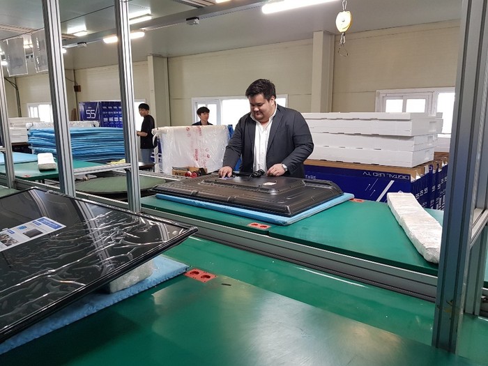 위렌 카르만 필리핀 HMR그룹 부사장이 18일 오후 TV생산업체를 방문해 제품을 살펴보고 있다./사진=시소플랫폼 제공