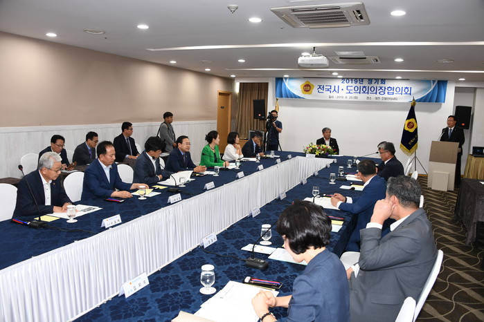 [광주=세계타임즈 손권일 기자] 김동찬 광주광역시의회의장은 20일 대전 인터시티호텔에서 열린 ‘전국시도의회의장협의회 2019년도 정기회’에 참석해 「전국시도의회의장협의회 제16대 후반기 임원 선임의 건」 등의 안건을 논의했다.