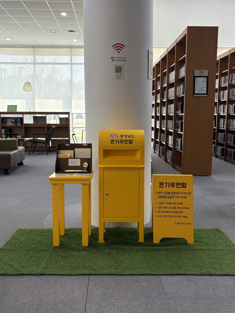 [충남 세계타임즈=이현진 기자] 충남도는 도청 본관 지하 1층 로비에 설치·운영하던 ‘온기우편함’을 더 많은 도민들이 이용할 수 있도록 충남도서관으로 이전했다고 25일 밝혔다.