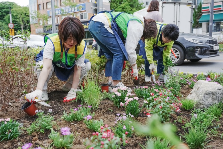 | ▲ 국제로타리 3750지구 수원지역 클럽 회원들이 2023년 5월 인계동에 손바닥정원을 조성하고 있다. |