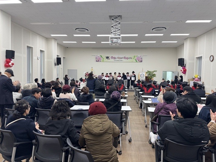[파주시 세계타임즈=송민수 기자] 파주시는 지난 5일 금촌1동 행정복지센터 4층 대회의실에서 ‘2026년 파주한마음교육관 중학 학력인정 성인문해교육 졸업식’을 개최했다.