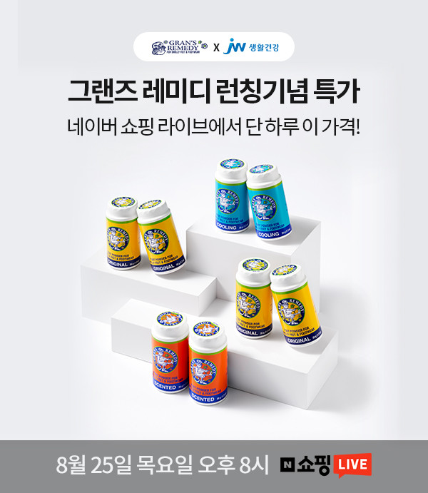 이번 네이버 쇼핑라이브는 오후 8시부터 한 시간 동안 진행되며, 신제품 그랜즈 레미디 35g 3종을 소개하고 정상가 19000원에서 최대 32% 할인한 12,900원에 판매한다. 이와 함께 오리지날(무향), 페퍼민트를 구매하는 고객에게는 피톤치드 스프레이 ‘포레스트샤워 휴대용’을 사은품으로 지급한다.
