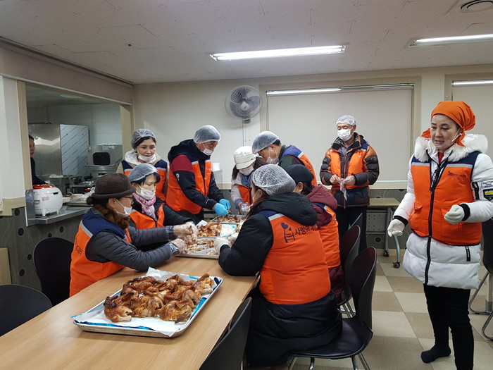 신상일 통닭 봉사 단장은 “새해 첫날에 즉석에서 구운 통닭을 맛있게 드시는 장애인들의 모습에서 행복과 보람을 느낀다.”고 말했다.