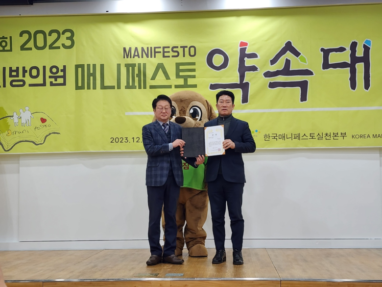 한편, 매니페스토본부는 ‘제15회 2023 지방의원 매니페스토 약속대상’에서 공약이행 분야는 광역의원 10명(최우수상 4명, 우수상 6명)과 기초의원 4명(최우수상 2명, 우수상 2명) 등 총 14명, 좋은조례 분야는 광역의원 59명(최우수상 26명, 우수상 33명)과 기초의원 53명(최우수상 25명, 우수상 28명) 등 총 112명이 선정했다.