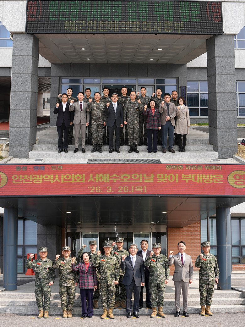 정해권 의장은 “서해를 지키는 일선 현장에서 국가와 국민의 안전을 위해 헌신하고 있는 장병 여러분께 깊이 감사드린다”며 “인천시의회는 지역 안보의 중요성을 무겁게 인식하고, 군 장병들의 헌신이 존중받을 수 있도록 지속적인 관심과 지원을 아끼지 않겠다”고 말했다.