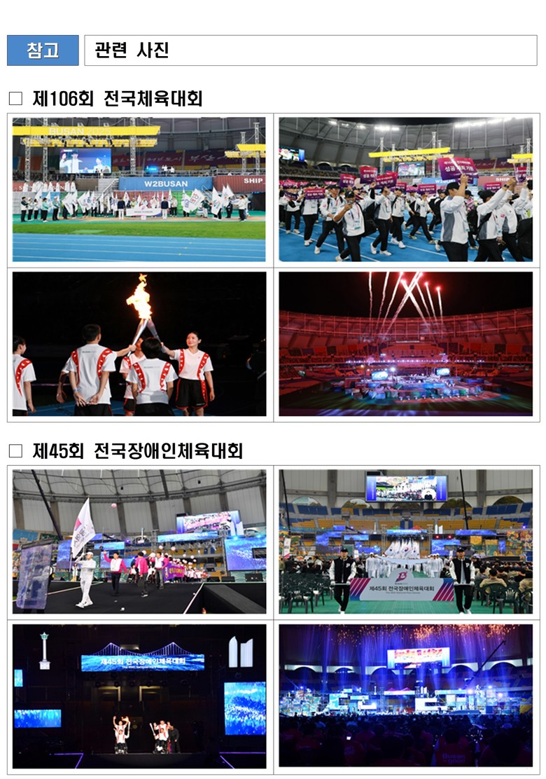 지난 10월 17일부터 23일까지 진행된 「제106회 전국체육대회」는 52년 만에 '종합 2위 탈환'이라는 역사적인 기록을 세우며 대회를 마무리했고, 뒤이어 10월 31일부터 시작한 「제45회 전국장애인체육대회」는 24년 만에 부산에서 개최되어 그 의미를 더했다.