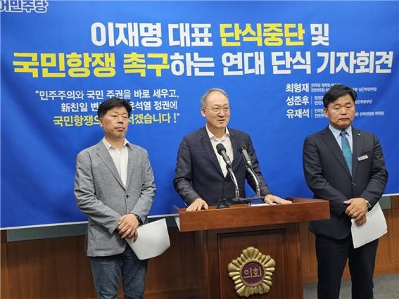 이들 3인은 11일 오전 전북도의회 브리핑룸에서 공동기자회견을 갖고 “윤석역 정권은 국민에게 고통만 주는 무능과 패악질을 즉시 멈추라”며 오늘부터 무기한 단식에 돌입한다고 밝혔다.