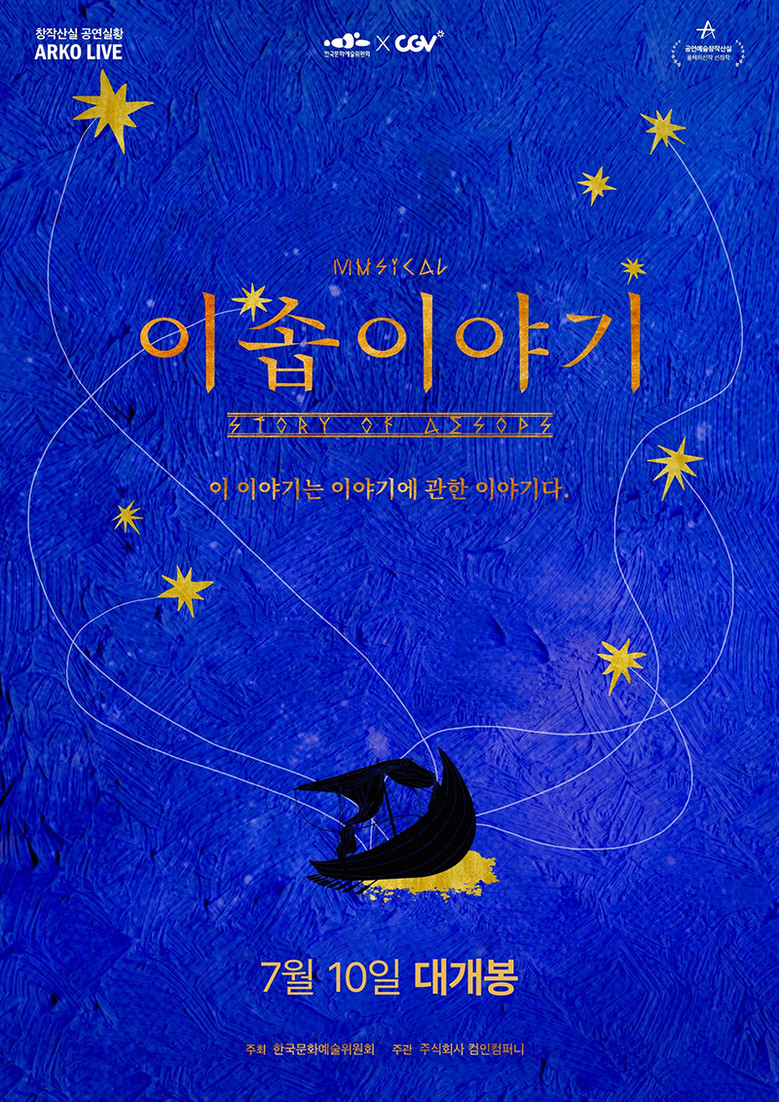 7월 10일 개봉하는 창작뮤지컬 ‘이솝이야기’는 그리스 설화 ‘이솝우화’에서 모티프를 얻은 작품이다. 2,600년 전 그리스 사모스 섬의 노예로 살던 한 이야기꾼의 이야기가 어떻게 오랜 세월 동안 사람들의 마음 속에서 전해져 내려올 수 있었는지 이야기의 본질을 고찰한다. 한편의 동화적인 플롯을 무대적 상상력으로 진정성 있게 표현하여 관객들의 큰 사랑을 받았던 작품이다. 창작진과 함께하는 스페셜 프로그램도 진행될 예정이다.