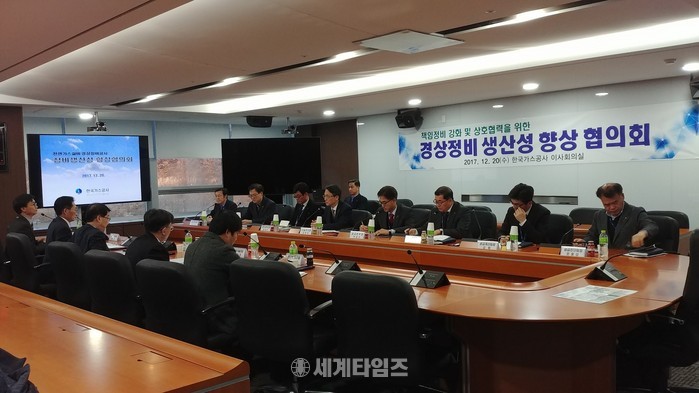 [세계타임즈 양준호 기자]한국가스공사(사장 직무대리 안완기)가 지난 20일 대구 본사에서 한국가스기술공사와 ‘천연가스 설비 경상정비 생산성 향상 협의회’를 개최했다.