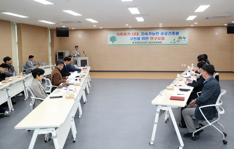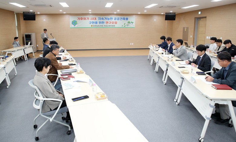 이날 모임에는 김도훈 의원(천안6·국민의힘)이 대표를 맡았으며, 정병인 의원(천안8‧더불어민주당)을 비롯해 공무원, 민간위원 등 각계 전문가 10여 명이 참여했다. 회의는 먼저 (사)한국패시브건축협회 최정만 회장이 ‘지속가능한 충청남도 공공건축물 건축을 위한 방안연구’ 발제를 통해 충남도 건축물의 현황과 문제점을 설명하고, 이를 바탕으로 회원 간 자유토의가 진행됐다.