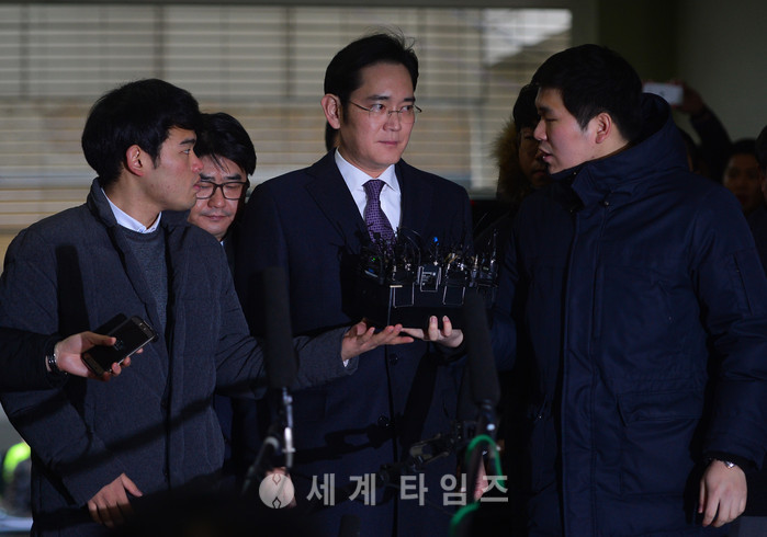 430억원대 뇌물공여 등 혐의로 구속영장이 청구된 이재용 삼성전자 부회장이 구속 전 피의자심문(영장실질심사)을 받기 전 서울 대치동 특검으로 들어서고 있다. 2017.01.18.