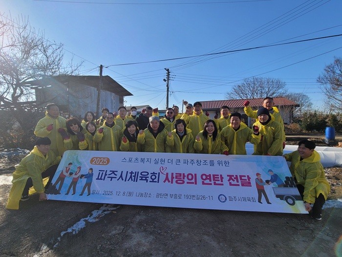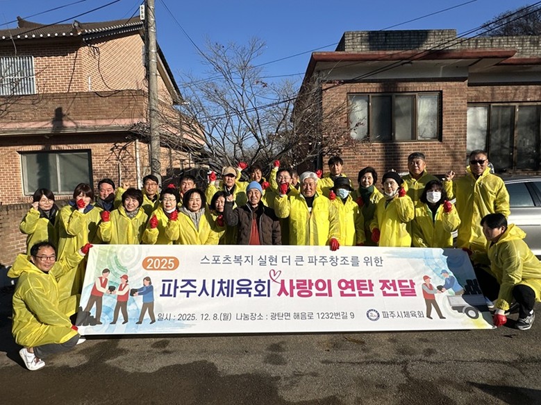 이창우 체육과장은 “이번 연탄 나눔은 체육인이 앞장서 지역사회에 따뜻함을 전한 뜻깊은 자리”라며 “파주시는 체육이 단순한 생활 활동을 넘어, 이웃을 연결하고 공동체 가치를 확산하는 역할을 할 수 있도록 하겠다”라고 말했다.
