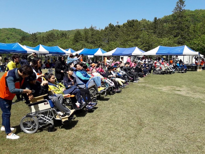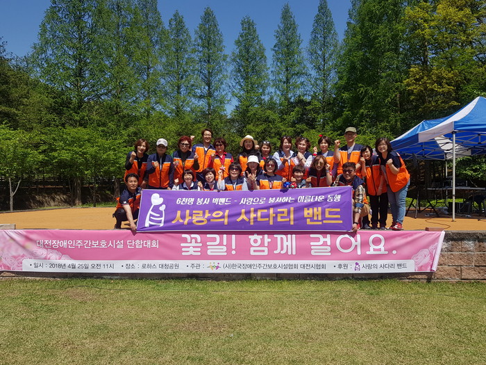 500명의 장애인들이 참석한 단합대회에서 사랑의 사다리 밴드는 회원 70명이 축하공연 재능기부, 행사 안내, 통닭 250마리를 지원을 하였다.